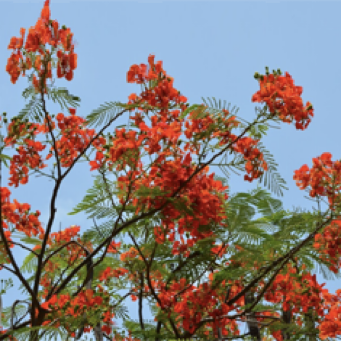 Culturally, the tree is often associated with the summer season, and its vibrant flowers are a common sight in many cities and towns. Deemed an important part of Indian culture and mythology, it is often featured in literature and art. In some parts of India, the Gulmohar tree is known as the “Mayflower” or the “Flame of the Forest”, and when in full splendour is second to none in beauty, radiance and dazzle.