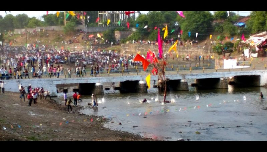 A Palash tree stands tall in the middle of the river, crowned with a flag fluttering at its apex. On one bank, you have the residents of Savargaon, on the other, Pandhurna, and they come together not in peace but in pursuit of