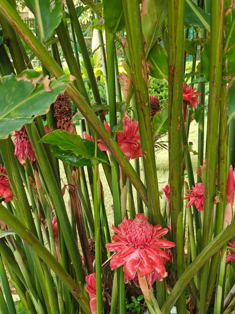 This was no fleeting bloom, no modest passerby in the garden’s pageant. It stood—no, it held court—with a bold poise, layered in bracts of blush and crimson, its centre tight with secrets, its edges curled like ancient scrolls. The Torch Ginger, they call it—Etlingera elatior. And in that moment, the name felt wholly inadequate. This wasn’t merely a flower. It was a revelation.