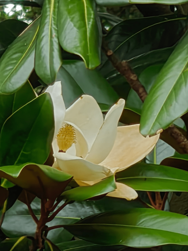 While Alfred Lord Tennyson gave us an image of their trailing magnificence, in William Faulkner’s mythic South, the Magnolia serves not just as backdrop but as a companion to time’s slow corrosion. Toni Morrison’s Beloved gives us a searing image of “the soft furred leaves of a magnolia tree” offering shelter and maternal solace during trauma. The tree becomes a vessel of protection, of memory, and of unspoken pain.