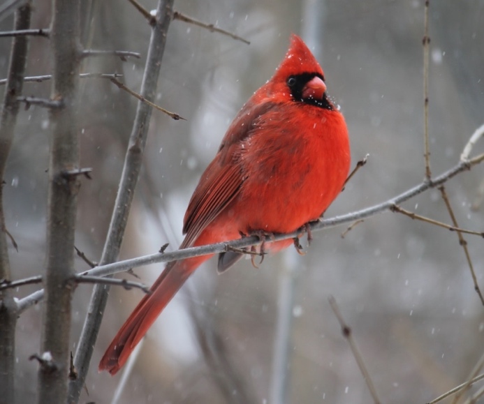 Cardinals are year-round residents, refusing migration even when the snow falls thick. Their persistence has long made them a symbol of hope and constancy, and in many Christian-influenced traditions the cardinal’s flash of red is taken as a symbol of life, of hope, of a visitation from a loved one who has passed. “When cardinals visit, angels are close,” goes a saying in parts of the American South.